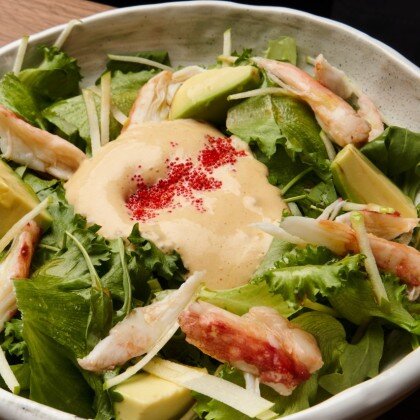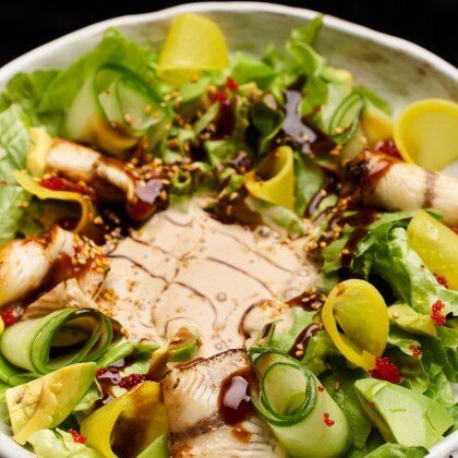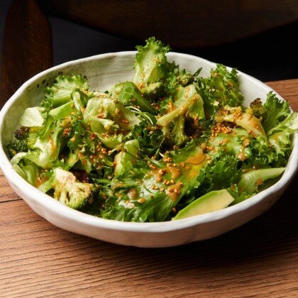 Зеленый салат с брокколи, авокадо с легкой масляной заправкой