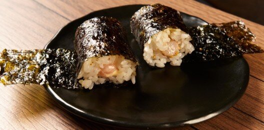 рис, водоросли Нори, креветка, соус Юдзу- айоли