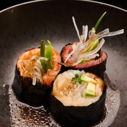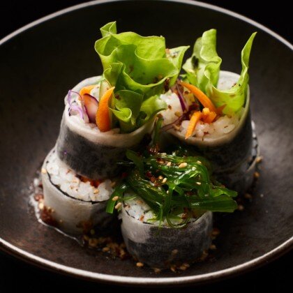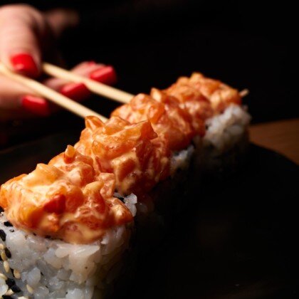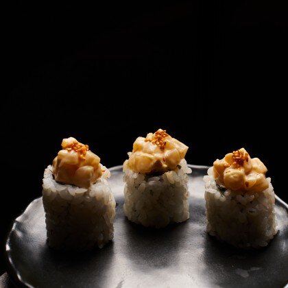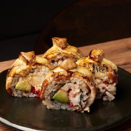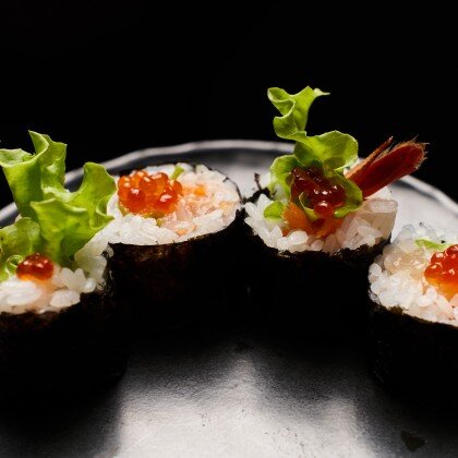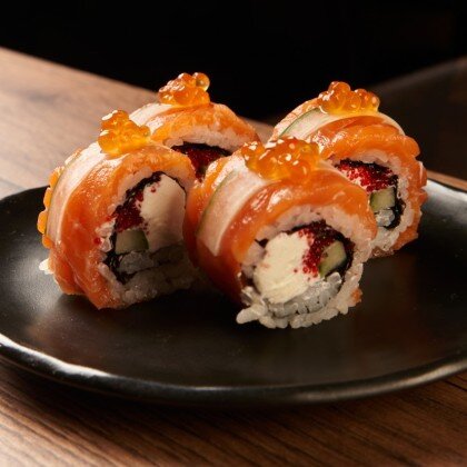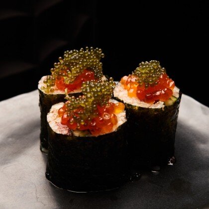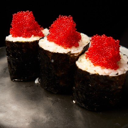 рис, водоросли "Нори", кревветка в кляре, тобико, сыр сливочный
